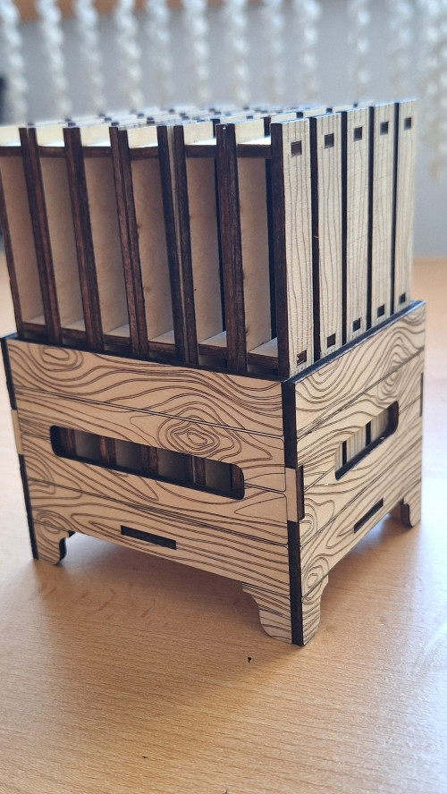 Tilbehør: Matchende opbevaringsboks i træ medfølger