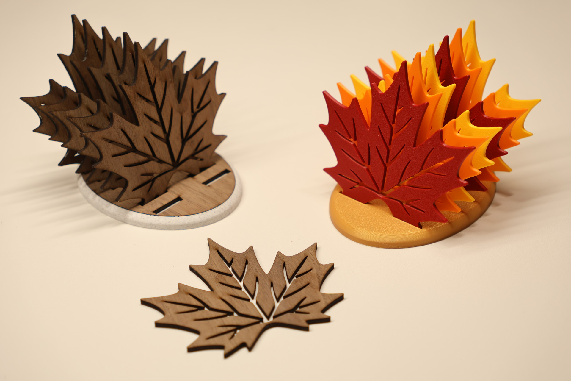 Bring naturens skønhed helt ind på sofabordet med disse unikke Maple Leaf coasters. Bordskånerne er formet som smukke ahornblade og er skabt i en spændende kombination af varmt træ og slidstærkt plast, hvilket giver et moderne, men organisk udtryk.