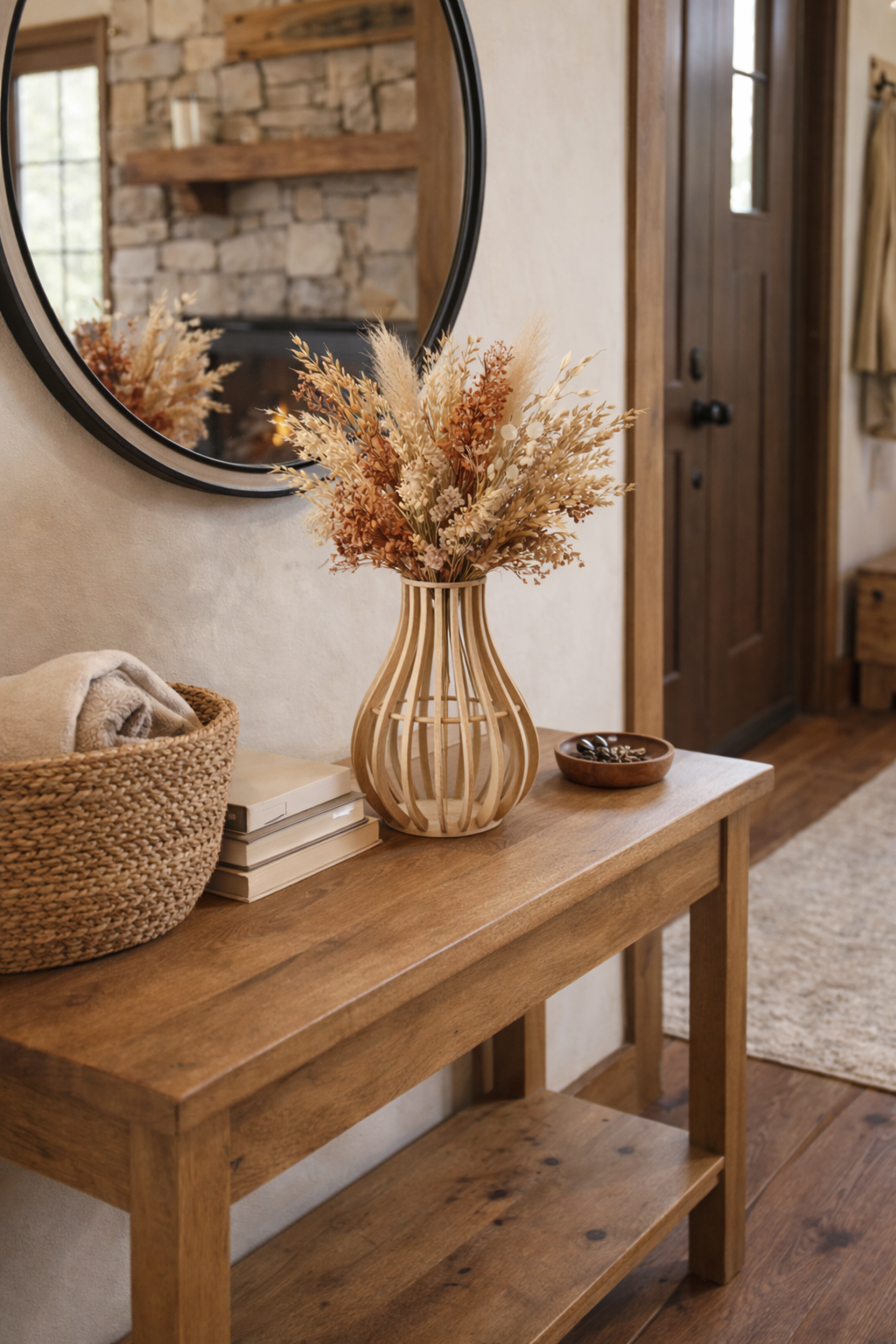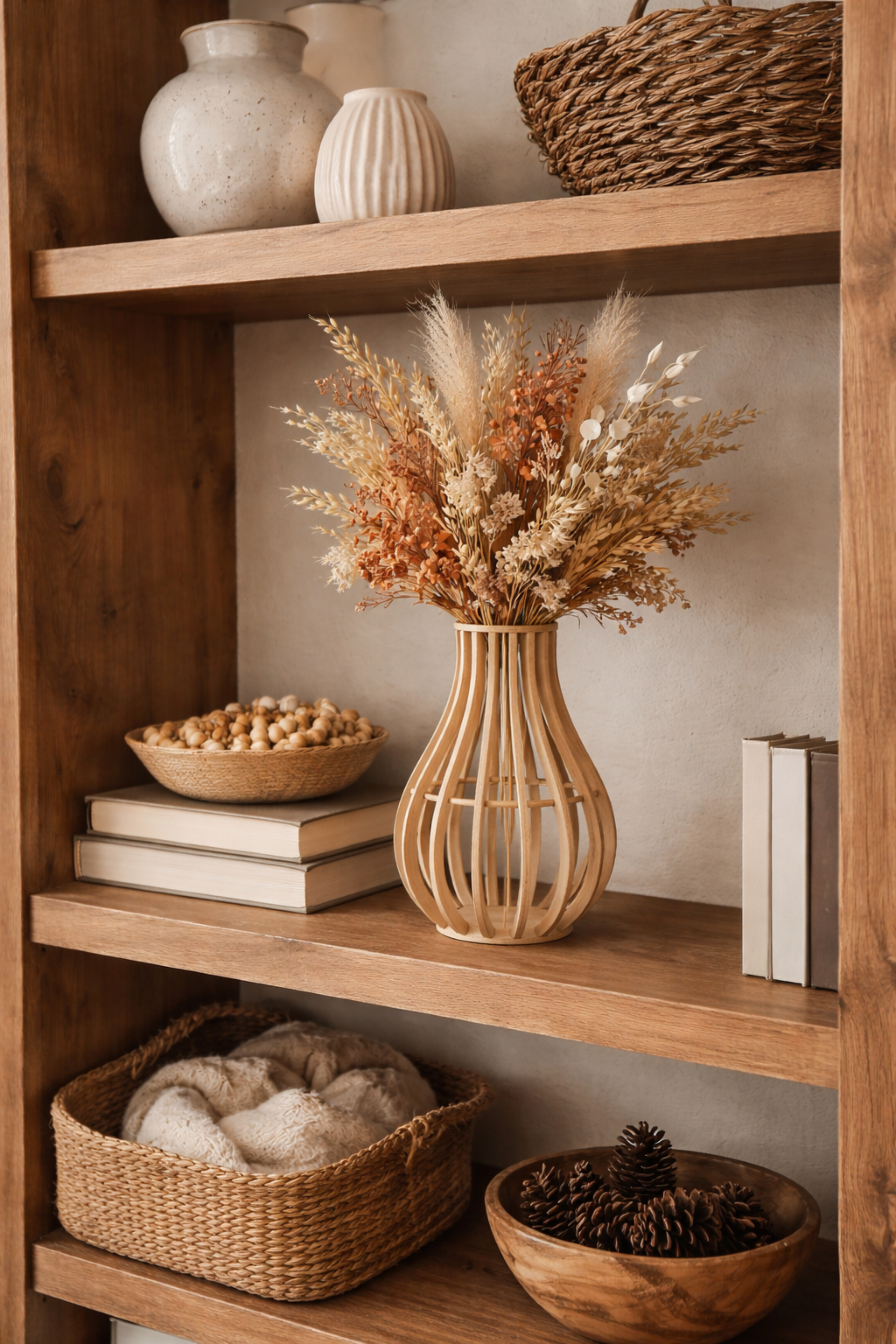 Inspired by warm entryways, wooden shelves filled with memories, and the calm of natural materials, this vase brings a sense of balance, warmth, and intention into any space. It is not loud. It does not compete. It simply belongs — as if it has always been there.